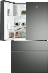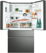 Additional Features: Ice and Water (Plumbing Required), FlexFresh Fully Convertible Drawer, SmartSplit Door Design, TasteLock Easy Glide Crispers, Slide-back and Flip-up shelving, Connectivity, Mark resistant real stainless steel,