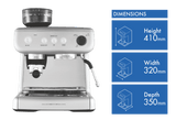 Unleash your inner barista with the steam wand that creates silky microfoam milk, then use the 58mm commercial size portafilter to pull 1 or 2 shot volumes at the press of a button. At 410mm high, 350mm deep and 320mm wide, the Barista Max Silver is compact enough for small kitchens. Complete with single and double wall filter baskets, tamper and milk jug, this versatile coffee machine lets you craft cafe-quality coffee drinks with ease. The manufacturer's part number for this product is EM5300S.