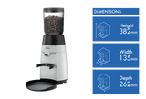 The large grinding chamber takes care of multiple cups in one go. Adjust the grind size from fine to coarse with a simple turn of the dial. The see-through lid lets you monitor grinding progress. Compact in size, the grinder looks smart on any kitchen countertop.