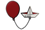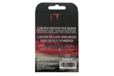 Inspired from the infamous opening scene, this design connects 2 badges by a chain (68mm), the SS. Georgie (45 × 28mm) and Pennywise’s iconic red balloon (45 × 34mm) both coloured with hard enamel. Each badge set is limited to 5000 worldwide with each being individually numbered on the balloons reverse.