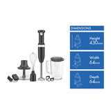 What's In The Box: Cordless Variable Speed Hand Blender, Removable Blending Arm 20.3cm, 1 Litre BPA Free Hand Blender Jar with Lid, 4-Point Stainless Steel Blade, Charger, Charging Port, Pan Guard, Whisk Attachment, Chopper Attachment