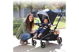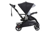 The Baby Trend Sit N’ Stand 5-in-1 Shopper Stroller is perfect for your growing family. With the new compact and streamlined frame, our Sit N’ Stand 5-in-1 Shopper Stroller has 5 modes of use – travel system mode, car seat in the front seat and older child standing on platform, child in the stroller seat only, child in the stroller seat with sibling sitting on bench, and child in the stroller seat with sibling standing. The front and back seats can hold kids up to 50lbs each. Strolling with our Sit N’ Stand Shopper Stroller will be a breeze for you and your little ones. Your children will appreciate Comfort Cabin, which includes removable extra-long canopy with UPF 50+ protection, multi-position reclining seat, deluxe fabrics and premium padding that will keep them safe and comfy, staying away from the harmful sun rays. Parents will love our Parent Premiums that have a modern parent console with multi-directional cell phone positioner and extra-deep cup holders. Mom and dad now can easily access the large storage basket in the front and back. With the innovative MagneTec Basket, parents can open and close the basket very quickly with the help of strong magnets to hold the basket closed. This practical extra-large basket can be extended and hold up to 30lbs of parents’ essentials – groceries, toys, diaper bags, etc.