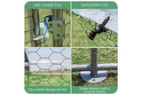 The chicken coop is designed with a lockable door and closed hexagonal mesh to prevent your pets from escaping and protect them from predators. In addition, you don’t really need to worry about bad weather, because the sturdy galvanized metal frame with ground stakes ensures reliable stability to withstand rigorous conditions. The waterproof and sun-protective oxford cover also helps create a comfortable living environment for poultry. Water, snow and debris can easily run off the spire-shaped roof. All in all, our large poultry cage is a safe and comfortable shelter for chickens, ducks, rabbits, dogs and other animals.