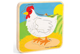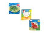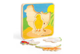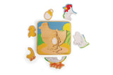 Little hands can piece together the evolution of an egg, to a chick, to an adult chicken. Features four lift-out jigsaw puzzle layers. Wooden puzzles help develop fine motor skills and language development.