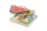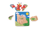 A layered wooden jigsaw puzzle that teaches curious kids about the animal life cycle.