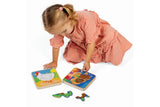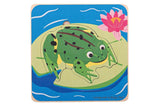 Is the tadpole hatching? Or is the frog ready to swim? Features four lift-out jigsaw puzzle layers. Made from quality, ethically sourced wood. Finished with non toxic, child-safe paints and lacquers. Contains 6 puzzle pieces, plus a layered puzzle template.
