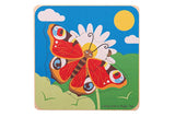 Is the caterpillar sleeping in its cocoon? Or has it transformed into a beautiful butterfly? Take a close look at the four lift out jigsaw layers to learn how nature works!