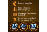 Build your own mini Pteranodon using this woodcraft kit. Instructions included and no glue needed. You can even paint your dinosaur any way you like and show it to your friends!