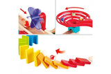 Track includes a jump, a bell-bucket, a spiral funnel, a marble wheel and 18 dominoes for your marbles to get through