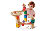 • Marble-run construction toy made with durable wood and non-toxic, water-based paints