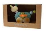 This pull along toy is great for infants. Dragon wings will flap up and down when pull a long. This toy will help with fine motor skill. It will make a great companion for the little ones as they take it walks with them during the day. Each toy is individually boxed. The bright colour body is painted with non-toxic paint and made with good quality wood.