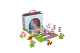 This is a well-made princess story travel box play set. Kids will be able to enjoy this set on the go. The front panel folds down and reveals the interactive play area. This box comes complete with farm animals, a tractors and accessory to compliment the scene. When finish playing the box folds up and everything can be stored inside and comes with a helpful handle on the top of the box. Pretend play enhances creativity and problem-solving skills.