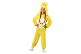 - Plush all in one bright yellow jumpsuit with front zipper closure and trademark belly badge of a sun in the centre of the tummy