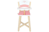 This mini highchair encourages dolls to sit up straight and eat their food.