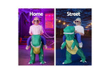 Spook and wow your guests this Halloween with a fun and creative Inflatable Dinosaur Costume. With its cartoonish Dinosaur design, the costume is guaranteed to delight and impress at your next Halloween party. The costume is made from water-resistant polyester, making it fit to wear come rain or shine. The portable fan system consumes little electricity and can be powered by either 4 x AA batteries or via power bank (batteries and power bank not included). Store your power in the convenient built-in power case. The costume inflates and deflates quickly so you can get the party started without delay. The costume is easy to wear: simply plug in the power, put on the suit then turn on the power and watch the costume inflate in seconds. One size fits most adults. For a winning Halloween costume, you can’t go past our Inflatable Dinosaur Costume.