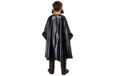 - Long detachable cape with hook and loop closure tabs at the shoulders