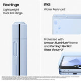 A pocket-sized powerhouse that flips open to full size, Galaxy Z Flip6 has arrived. The outer FlexWindow display keeps up with you, updating in response to changes like the weather2. Ace your selfies and group photos with an upgraded 50MP camera5 in FlexMode, just stand and flex for your best angles, and let FlexCam with AI-powered auto zoom6,7 automatically frame and focus for the perfect hands-free shot. Get instant search results just by circling your screen with Circle to Search3. Connect and make new friends, even if you don’t speak the same language with Live Translate4, it lets you listen to foreign languages in your preferred one, in real time during calls. Experience the next level of iconic style with a new floating design built with Gorilla Glass Victus 28, armour aluminium9 and a dual rail hinge for the toughest Flip yet5. Best of all an upgraded powerful battery5 gives you even more time to create and play.