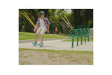- Inclined 360 degree caster trucks and pivoting deck