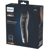 Achieve professional haircuts at home with the Philips Hair Clipper Series 9000. The chrome trimmer features stainless steel blades and a powerful auto turbo motor for precise, smooth cutting. With 60 length settings from 0.5mm to 42mm, you can create any style you want.