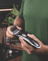 | What's In The Box: | Cordless Clipper, 6 reinforced clipper guide combs: 1/2, 1, 1.5, 2, 3, 4, Soft storage pouch, Styling comb, Scissors, Cleaning brush, Blade oil, Transformer |