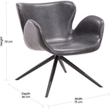 Material Composition: Faux Leather, Matte Black Powdercoated Metal Swivel Frame
