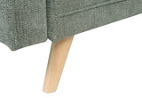 The olive green upholstery brings a sense of tranquility and warmth to the room, while the wooden legs provide a sturdy foundation.