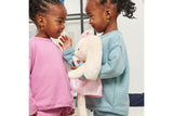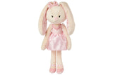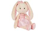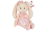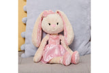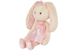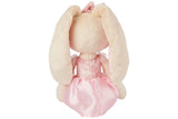 - Stuffed bunny with super-soft beige plush fur and floppy coloured ears with pink velvet