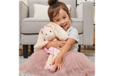 Curtsy is an enchanting ballerina bunny ready to be your new favourite dancing partner! Truly looking the part, Curtsy wears a beautiful pink tutu dress with embroidered rose details and silky velvet accents, matching pink ballet shoes and a cute little bow on top of her long floppy ears. She stands in her poise position at 44cm tall, ready to twirl to her hearts content. With embroidered safety eyes and premium plush material, Curtsy is surface washable, making her perfect for ages 1+ (especially at Easter time)!