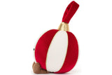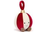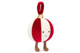 It must be Amuseable Bauble! This jolly ball has cream and cranberry segments, with a strong velour loop and soft golden top. Pop it onto a branch, turn on the fairy lights and watch it take the spotlight!