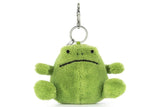 The Ricky Rain Frog Bag Charm bounces along in true frog style! With a strong silver clasp, squeezable paws and a podgy tummy, this leaf-green softy makes any journey fun. And if you look closely at that sweet stitch mouth, Ricky’s almost smiling… almost!