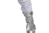 - Silver boot tops are attached to the jumpsuit and are designed to look like moon boots