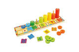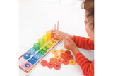 The award-winning Bigjigs Toys Learn to Count acts as a fun introduction to mathematics and counting from an early age. Children match the numbered squares to the dots on the base of the wooden puzzle; then count the brightly coloured discs as they are placed onto their individual pegs. The bright colours encourage young learners to work on number and colour recognition as they develop fine motor skills and hand/eye coordination. A great tool for parent/child interaction. The ideal introduction to counting for pre-schoolers. Helps to develop dexterity and concentration. Made from high quality, responsibly sourced materials. Consists of 55 play pieces.