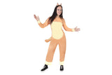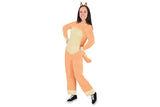 Jumpsuit features an attached tail with fibre filled stuffing and has velcro closures at rear.