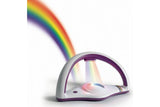 Enchanting light projector uses multi-coloured LEDs to display rainbow colours on walls and ceilings in a darkened room. Two illumination modes: instant or fade. Auto shut-off saves battery life.