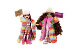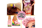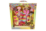- OUT & PROUD FASHIONS & ACCESSORIES: Roxxi™ & Nevra™ are in their loudest and proudest Pride parade looks! Roxxi™ wears a 2-piece jacket and skirt with JimmyPaul tie front ringer tee underneath, rainbow faux fur boa, LGBTQ+ buttons on her hat and skirt, socks and a gold chain belt with Bratz® letter charms. Nevra™ wears an a-symmetrical glitter top, flared pants with printed Bratz® graphics, a full-length faux fur rainbow coat, LGBTQ+ buttons on her hat, female symbol earrings, and shoes adorned with the Progress flag.