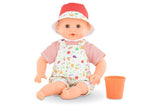 Dressed in a charming outfit and wears a matching sun hat and complete with its own bath toy, Bebe Bath is part of the mon premier poupon Corolle collection of dolls, clothing and accessories for early nurtering time.