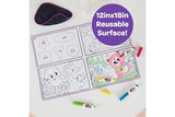 CRAYOLA COLOUR & ERASE REUSABLE ACTIVITY BOARD: Includes 12” x 18” Reusable Activity Board, 4 Washable Markers, and 1 Wipe Cloth.