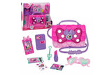 sunglasses, a play credit card, a play card holder, a play ticket, a play lipstick, and a sticker sheet. Requires 3 x AG13 batteries (included).