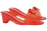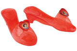 - One pair of red plastic click clack jelly shoes wiith sparkly finish