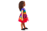 - Satin sleeveless tutu dress with rainbow colours in horizontal patterns