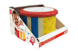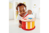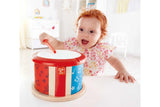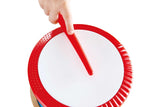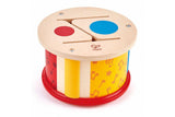 Create wild rhythms with this versatile drum! Use the stick on the top surface and the side ridges. Then flip over to play the wooden tone drum.