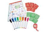 - Perfect for little minds to learn the alphabet, counting, and writing practice. Includes 44 letters, numbers, and sign stencils, eight whiteboard marker pens with erasers, one activity album, and one binder clip