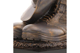 The Master Creations Stand Down Figurine is the perfect present for serving members or veterans. This cold - cast bronze figurine mounted on a wooden block depicts a soldier's slouch hat placed on his combat boots at the end of a long day. This versatile piece can be used as bookends, trophies and will make a great farewell gift. A timeless piece to evoke emotions and discussion.