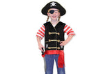 Yo ho ho and a costume for fun! Every young pirate will be ready for adventures on the high seas with this dramatic & great quality role play outfit and accessories. The set includes a pirate hat, eye patch, and is completed by a jauntily-detailed, velvet vest that holds the durable foam sword.