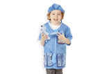 The care of all the toy “pets” in the house will be in capable hands when your little animal doctor is suited up in a machine-washable blue jacket, mask and surgical cap.