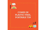 Out of ideas for how to interest bored kids? Pick a card! This card pack in a handy flip-top tin includes 50 fun ideas to keep boredom at bay as kids make the most of inside play. Choose cards with the PAINT icon for creative ideas, HEART icon for active ideas, and the BOOK icon for quiet ideas. Conforms to CPSIA, ASTM, and CE standards. Perfect for ages 4+.