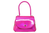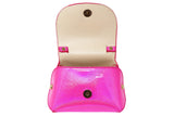 Add a touch of pink to your outfit with this limited-edition fashion Vibrant Vacation Press Lock Mini Bag! It is made from high-quality metallic hot pink fabric. Features a press-lock closure and a long handle for hands-free play.