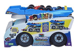The Hero Hauler is a toy vehicle playset with an awesome dual car launching feature, propelling the included Duo Racers from both the front and back of the vehicle. A simple turn of the lever at the base of the Hero Hauler ejects the PJ Masks toy cars and flips them when ejected from the back. Duo racers feature Owlette, Ice Cub, Catboy, and Newton Star. Haul your favorite super hero action figures by positioning them in the cab (sold separately, subject to availability.) This PJ Masks playset makes an excellent gifts for 3 year old boys and girls and up.