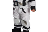- Plush all-in-one jumpsuit featuring silver painted patches on knees and waist band plus printed astronaut imagery such as front control panel, American flag on sleeve and planet