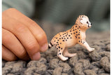 The sassy cheetah baby looks so cute with its beady little eyes and black snub nose. At birth it weighs only 300 grams, but by now it’s already had some time to grow. You can tell right away that it’s a cheetah baby by its typical black spots. It playfully raises a paw – I think it wants to catch something. Maybe a leaf blowing in the wind? Or has someone thrown it a ball of wool?